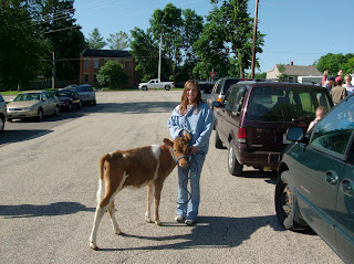 I have tried to live in smaller communities throughout my life and career, it is kind of funny that no matter how similiar the LittleTown USA is, they still have their unique characteristics. This morning at the market was definitely one of those unique moments. When I was unloading our truck to set up at the market this morning there was a young lady that had a calf on a rope walking down the middle of the street, I couldn't help but giggle and scramble to locate my camera...that so rocked my world...