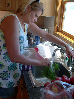 Recently Chef held a Stump the Chef class for the Schmitz family which was a lot of fun. Dan and Bonita Schmitz bought Chef at the Mineral Point Rescue Squad's Brat Feed and Fundraiser. The premise was that you invite 6 people to your home and they all bring a mystery bag of "stuff", Chef shows up with his tools and a bag of his own, we dump everything out on the table and Chef invents something out of whatever is on the table...The Schmitz's kind of took it to an extreme (which was OK) and we wound up having 19 people, 12 courses of food and a lot of fun!!!
