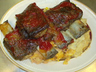 Beef Short Ribs, Mashed Taters, Corn O'brien, Squash Cassarole