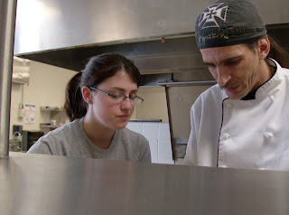 pieces of Cheffy's White Chocolate-Blueberry Fantasy Cheesecake or a